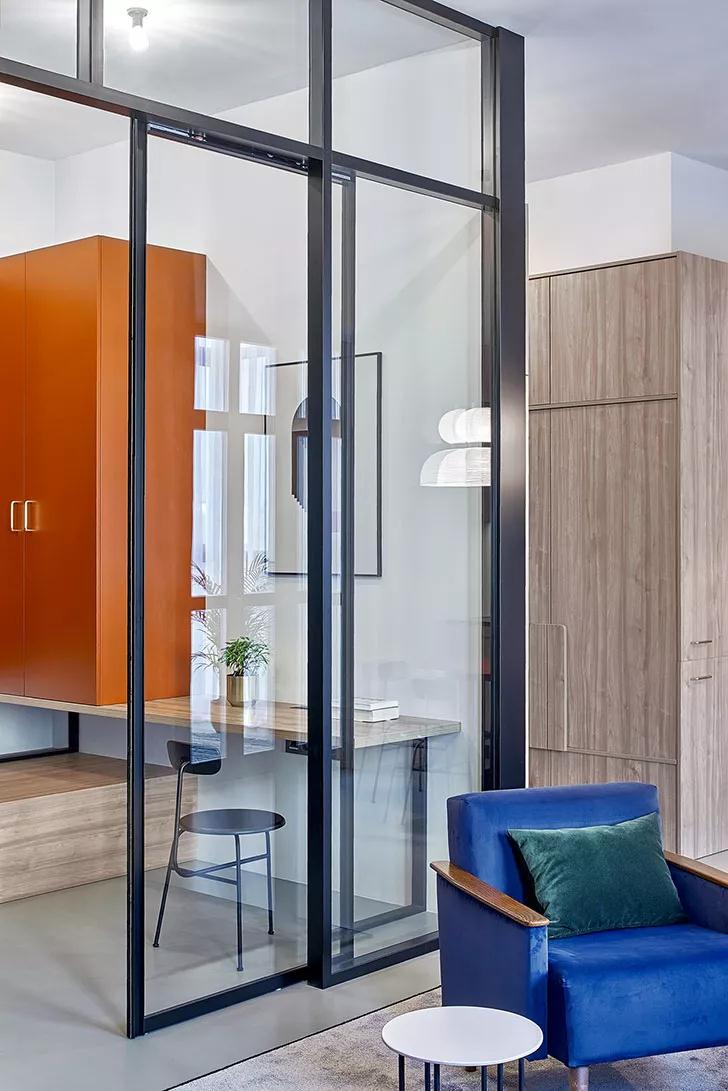 深蓝色的楼梯和护栏为孩子的安全带来了保证