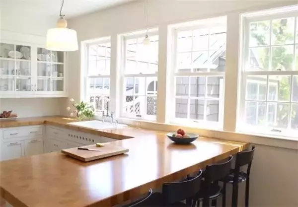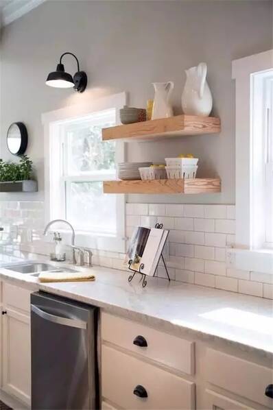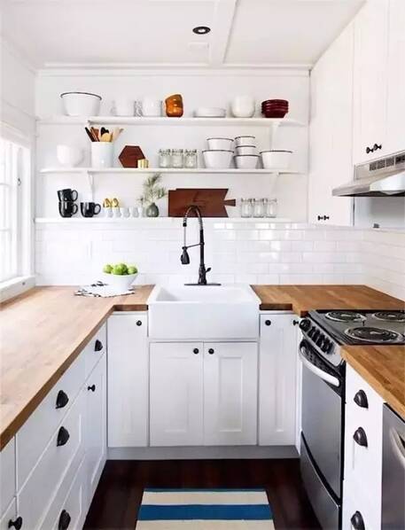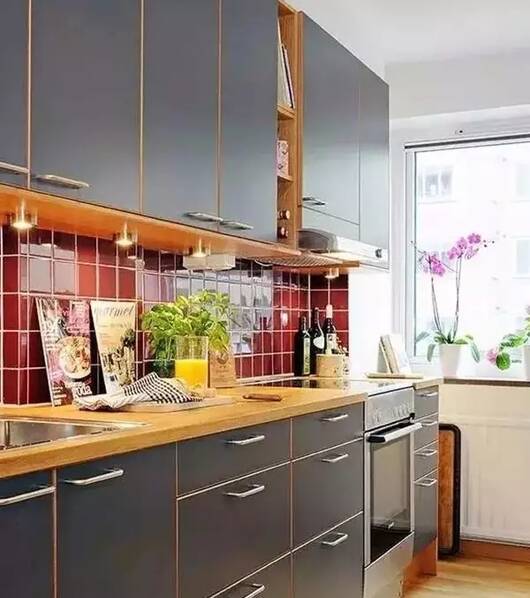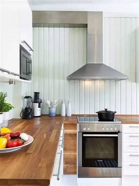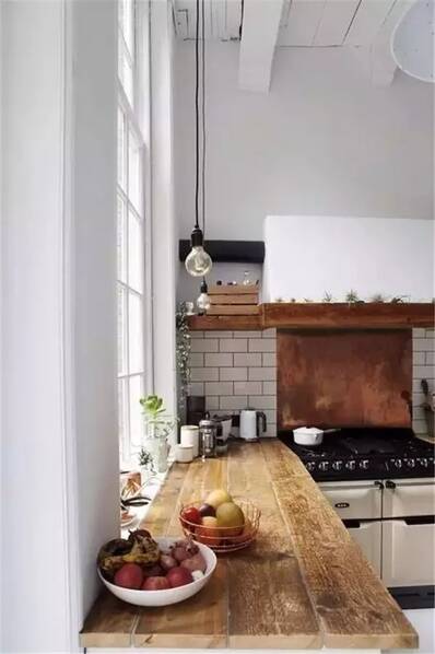 喜欢清新文艺厨房风格的可以选择木质,木头给人最原始,温暖自然的感觉,看起来也更温和舒适。木质的不管是实木还是防火板,都要注意的是不要直接把滚烫的锅子放上去,清理一定要勤快