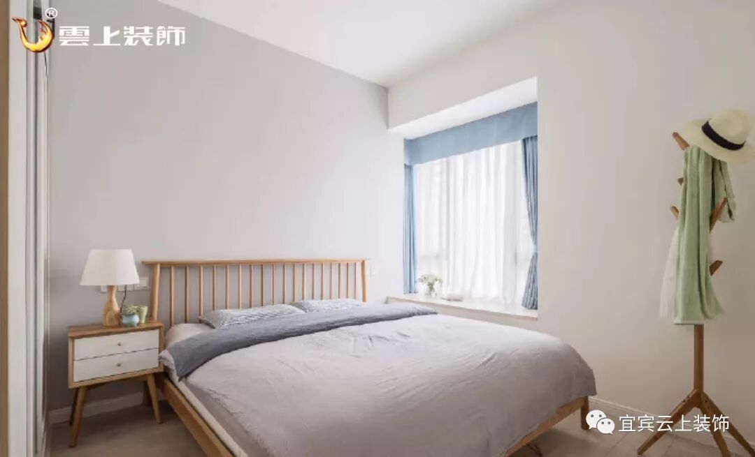 大多数人床上的靠背是什么样的?是方方正正的木板还是软软的大软靠?在这间卧室中设计师别出心裁将床头的靠背设计成了镂空的栏杆状,与周围纤细的桌脚、床脚和挂衣杆在款式和视觉上形成了统一,看起来清新自然,即使在冬天厚重的棉被衬托下也不会显得臃肿。