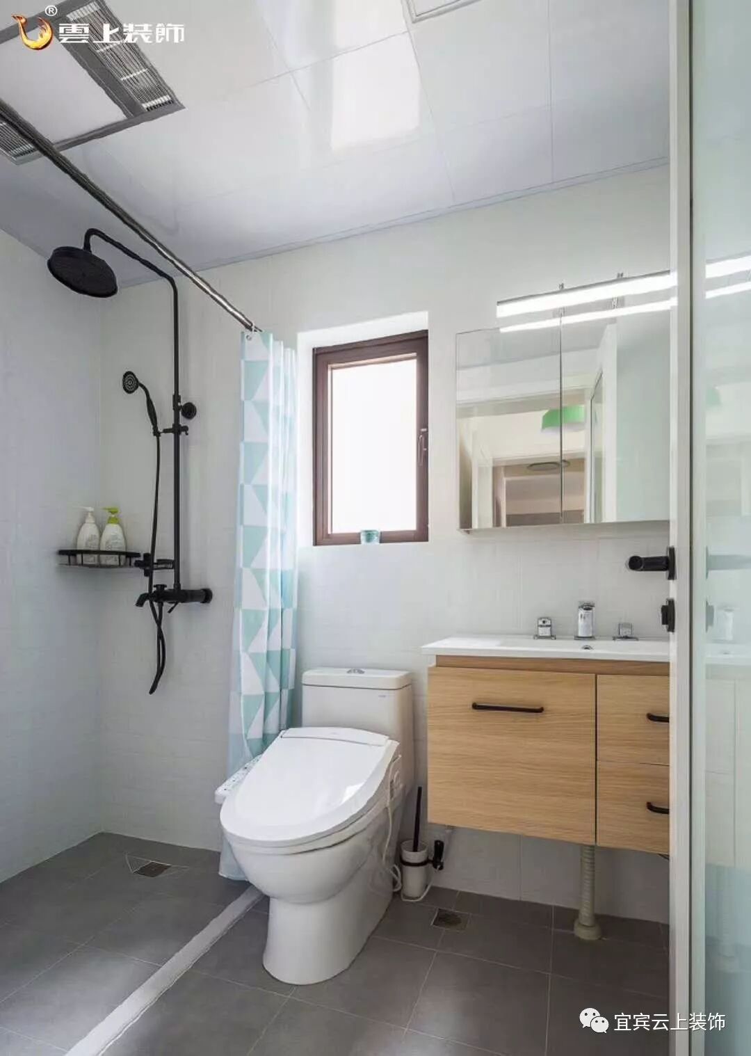 卫生间采用了当下十分普遍的干湿分离。相信很多人都有同一个困扰:洗完澡想洗漱却发现镜子上的水汽怎么也擦不掉。干湿分区后就不用担心这些问题啦,浴帘可以有效阻隔水汽的蔓延,同时也可以缓解忙碌的清晨争抢卫生间的情况。
