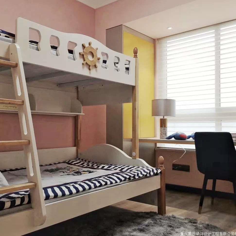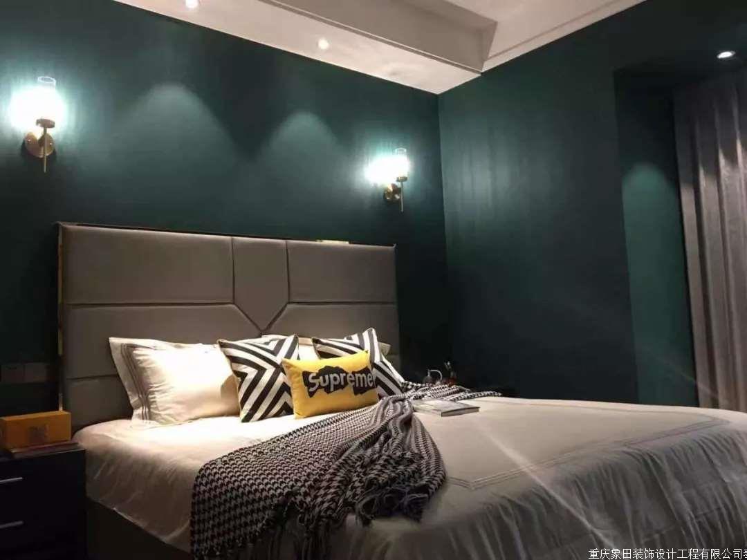 次卧的设计灵感来源于对自然的亲临,墨绿的背景颜色给空间带来了身处茂密森林的视觉感。仿佛与自然融为一体,置身于天然氧吧。