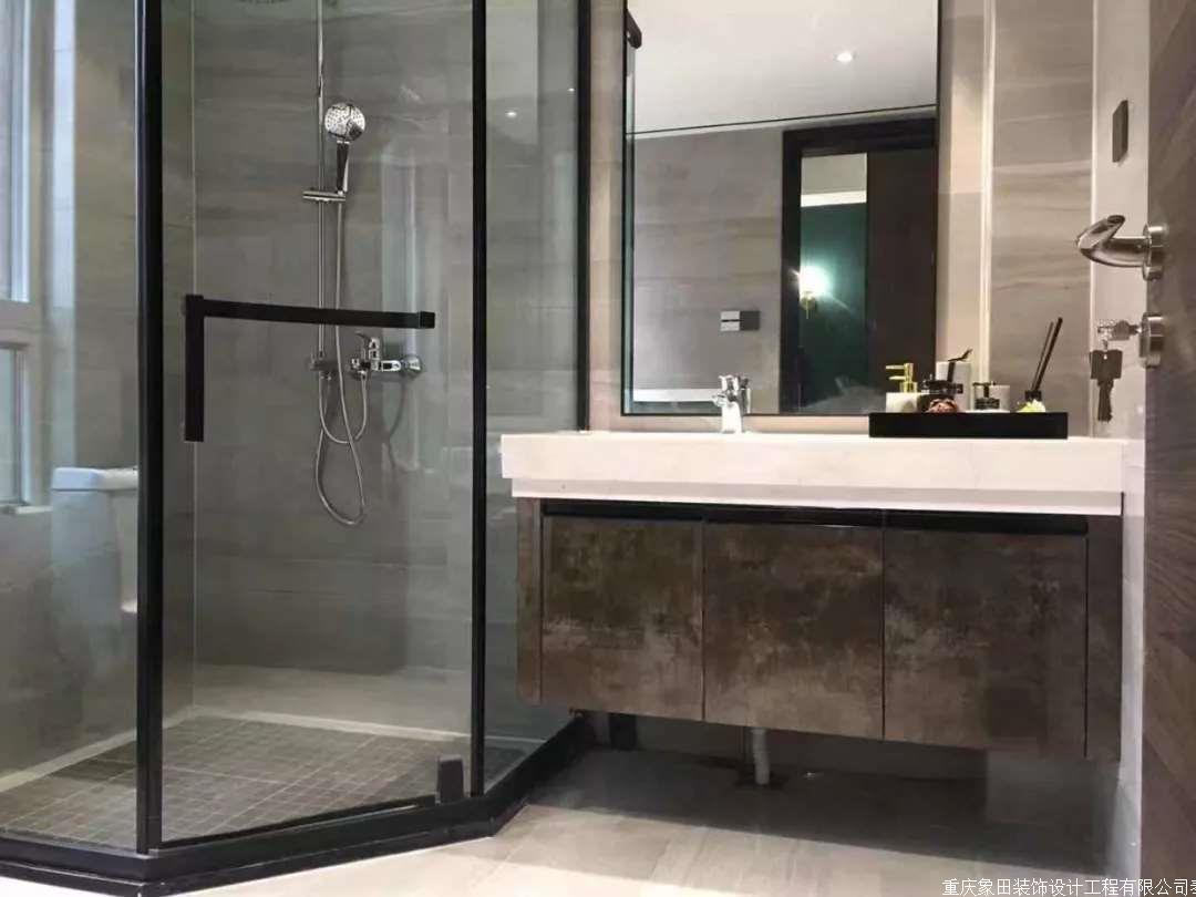 主卫干湿分区,采用防潮石膏板的吊顶,聚光射灯下的你、更显完美。台下盆的设计,余留了大面积的操作空间,打造出了五星级酒店的体验标准。