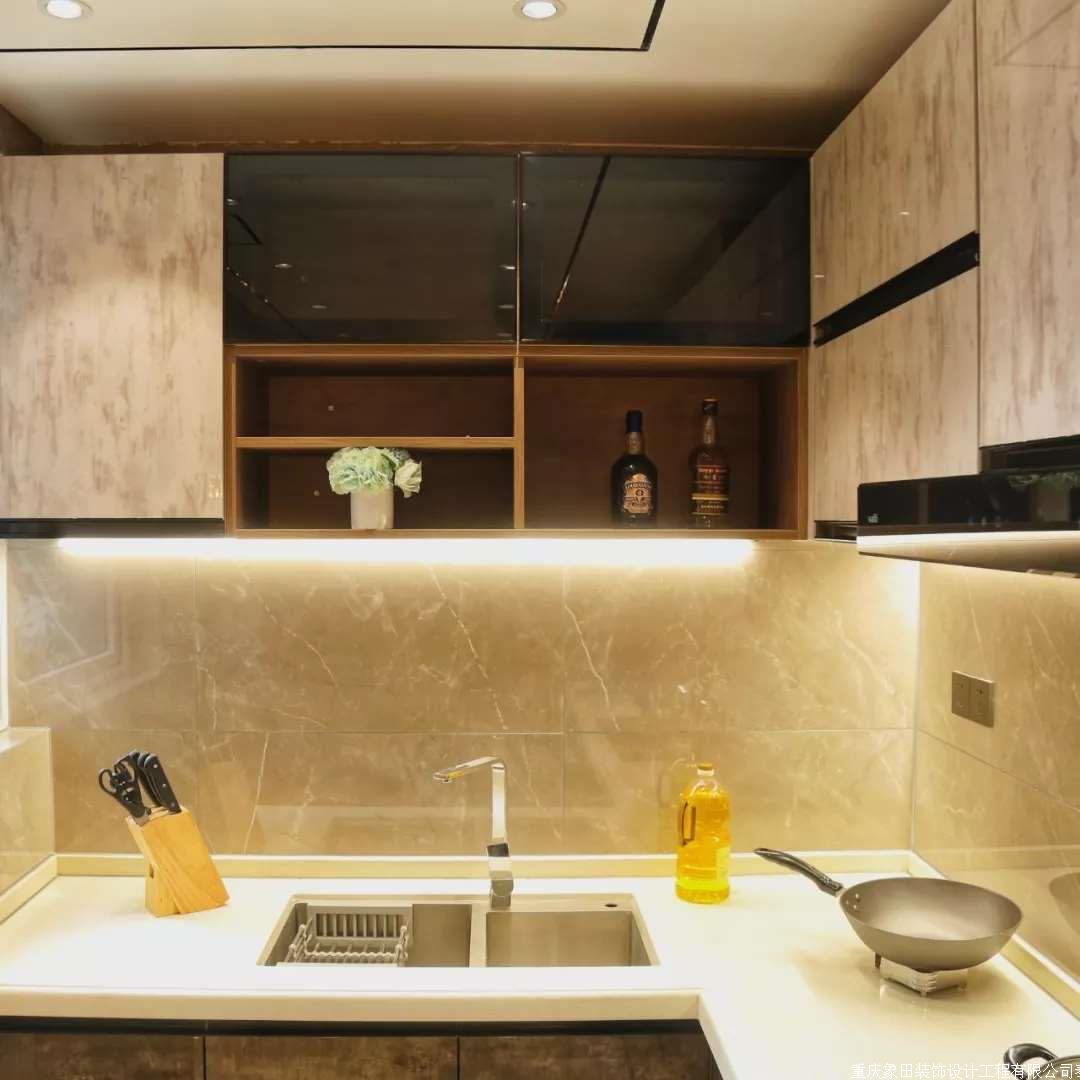 厨房采用人性化设计,吊柜下的自动感应光源,让大厨操作中少了很多的视觉盲区。