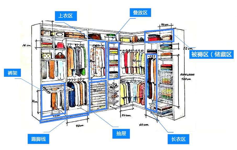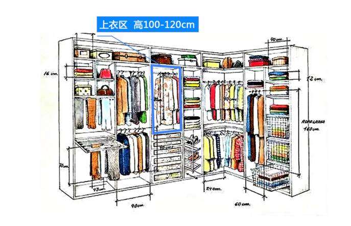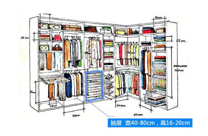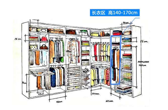 下面小编带大家看看专业的设计师对整体衣柜内部的尺寸标准是怎样划分的吧。