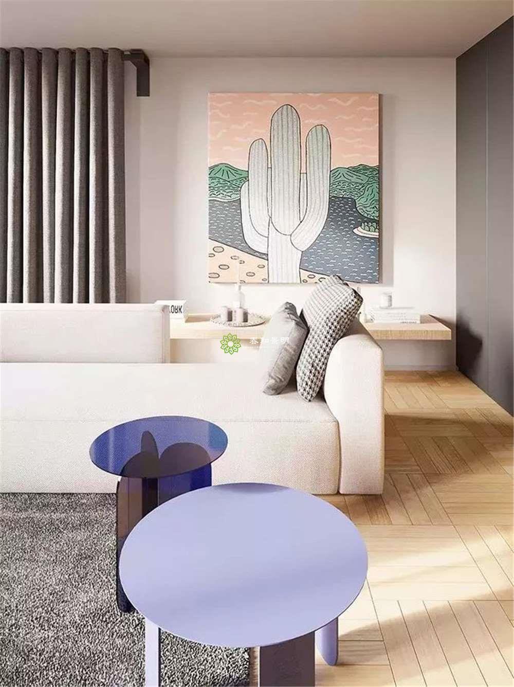 一棵活力勃勃的绿植让场域充溢天然气息,墙面还有一张仙人掌装修画作为烘托,牵引出扑面而来的活力活力。