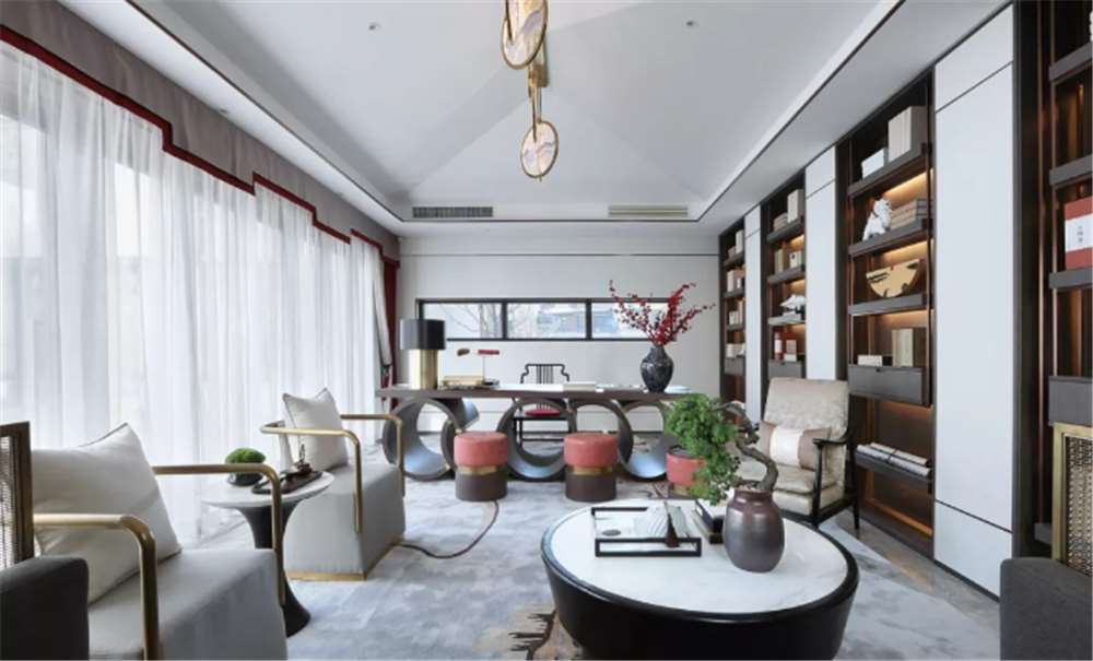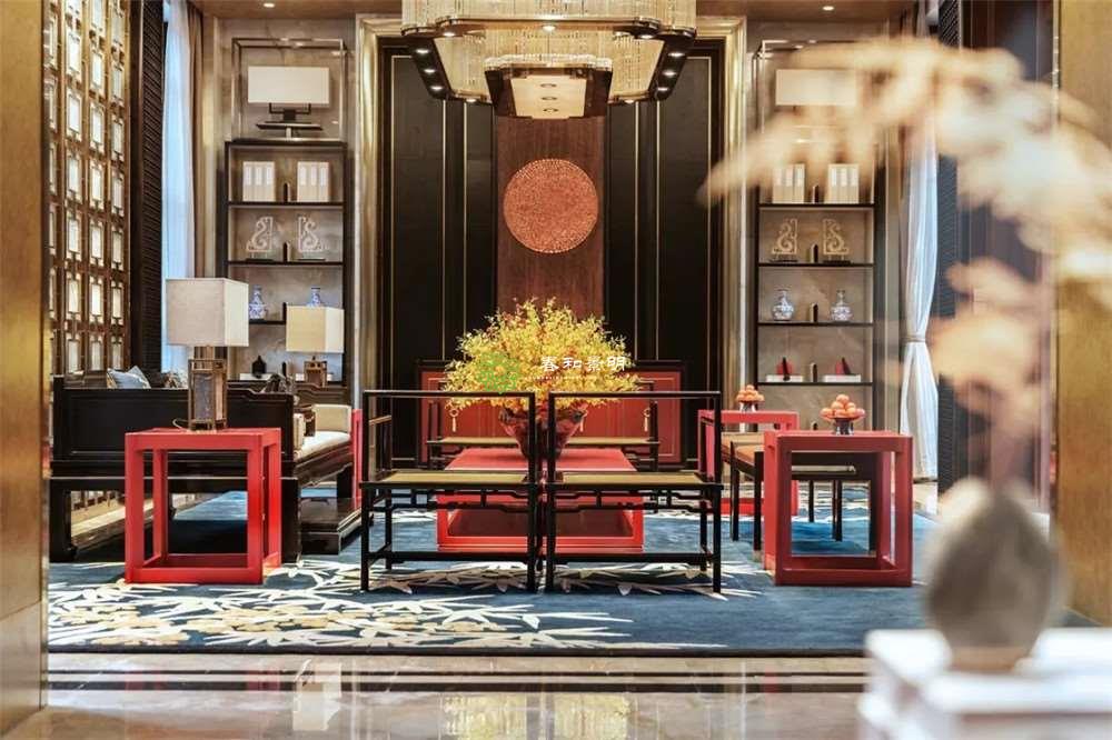 新中式风格以其所塑造的绝妙意境,对于生活在都市中的人来说,犹如返璞归真的世外桃源。除了气质高雅的水墨灰、红墙朱瓦、漆色门灯笼如火、栏杆亭阁、亮眼的色彩在中式文化中占据着浓墨重彩的一笔。展现着富丽堂皇象征着幸福祈愿。