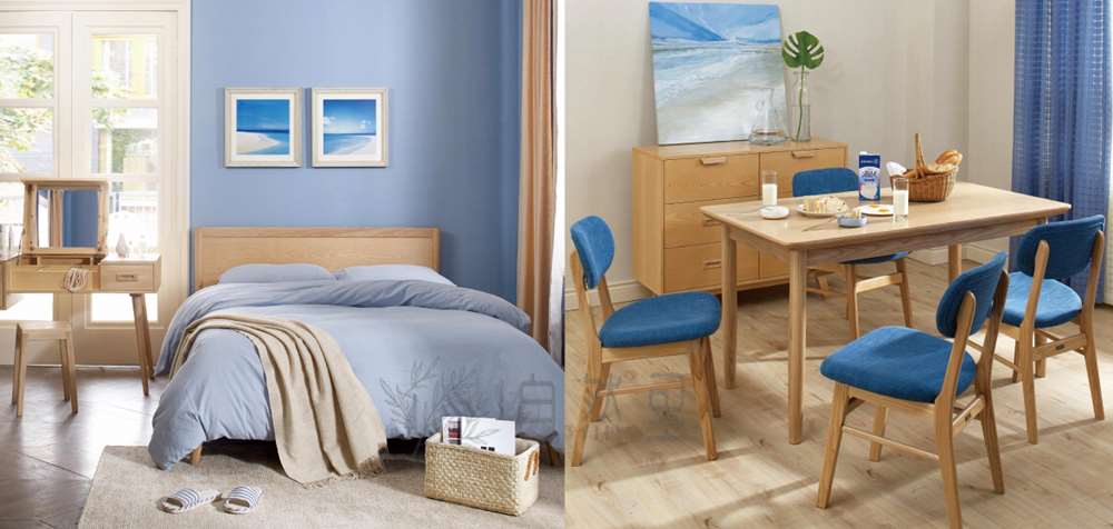 汲取千岛湖之芬兰的颜色,海洋的蓝,海浪的白,沙滩的黄,简洁宁静。陶瓷等材质的搭配,保留自然的触感,大海的元素让人仿佛置身辽远的海岸。